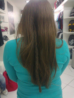 Levei um tempo a mais do normal pra alongá-lo até o tamanho que ela queria, dando esse resultado irado e que lhe agradou muito.